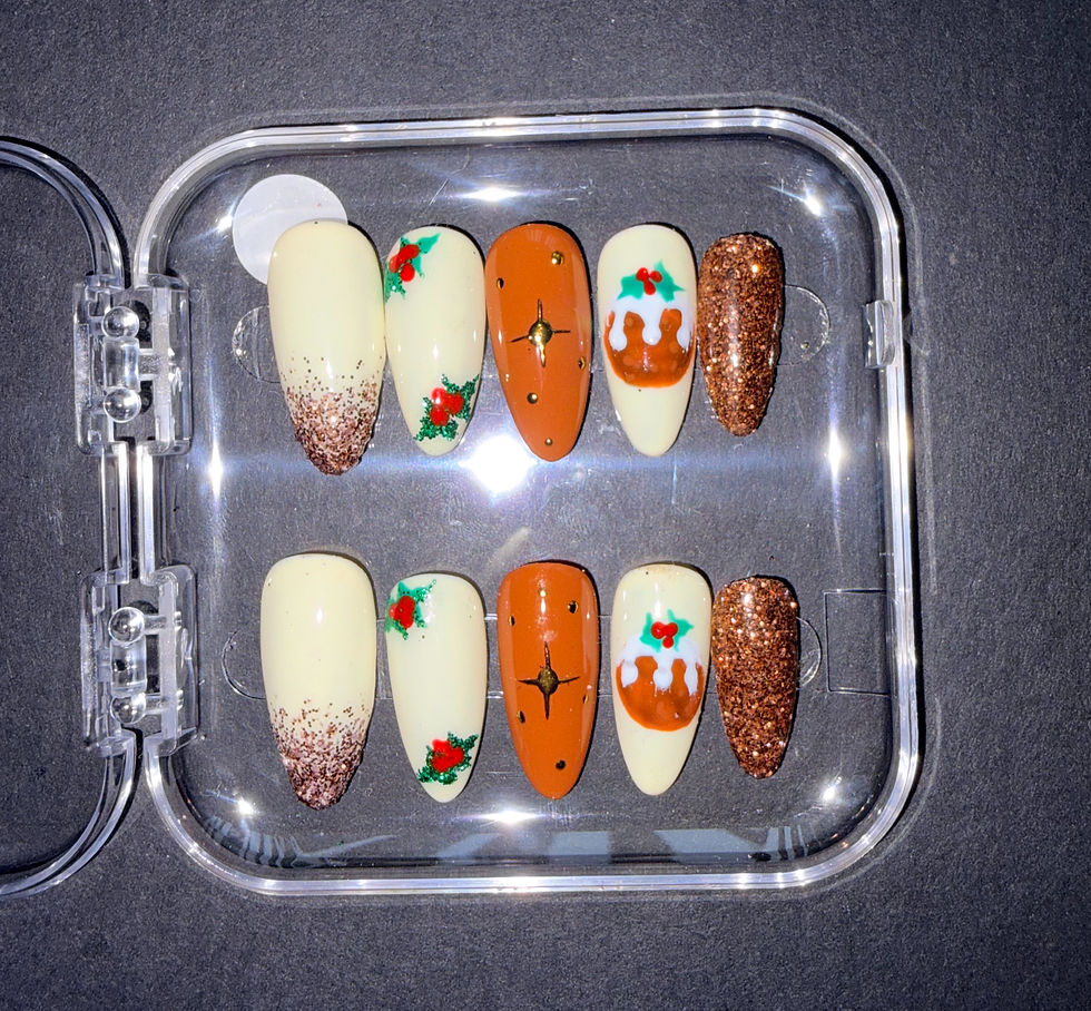 Hand Painted Brown & Cream Christmas Pudding Press on Nails with Holly Nail Art